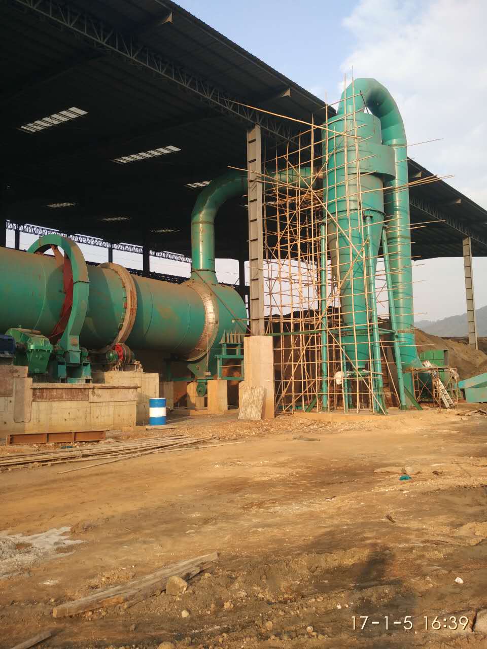 滾筒烘干機(jī)可以將含水分30%的煤泥,通過進(jìn)料輸送機(jī)均勻連續(xù)的送入煤泥烘干機(jī)內(nèi)。干燥機(jī)主體是略帶傾斜并能回轉(zhuǎn)的圓筒。由熱風(fēng)爐產(chǎn)生高溫?zé)峥諝馔ㄟ^連接管路進(jìn)入干燥機(jī),與濕煤泥順流接觸。干燥機(jī)內(nèi)部的解聚機(jī)構(gòu)、活動(dòng)篦條式翼板、清掃裝置和破碎打散裝置破碎對(duì)濕煤泥進(jìn)行翻混、推進(jìn)、強(qiáng)化換熱,*終把濕煤泥烘干成為終水分為12%~16%、粒度約為5~20mm 的松散的球粒狀產(chǎn)品。