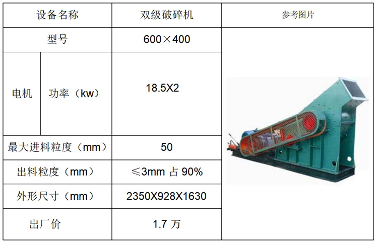 三、雙轉子兩段粉碎,產量大,出料粒度3㎜以下,2㎜以下占80%以上。